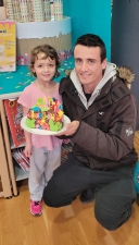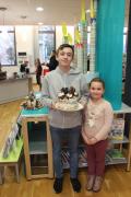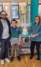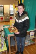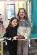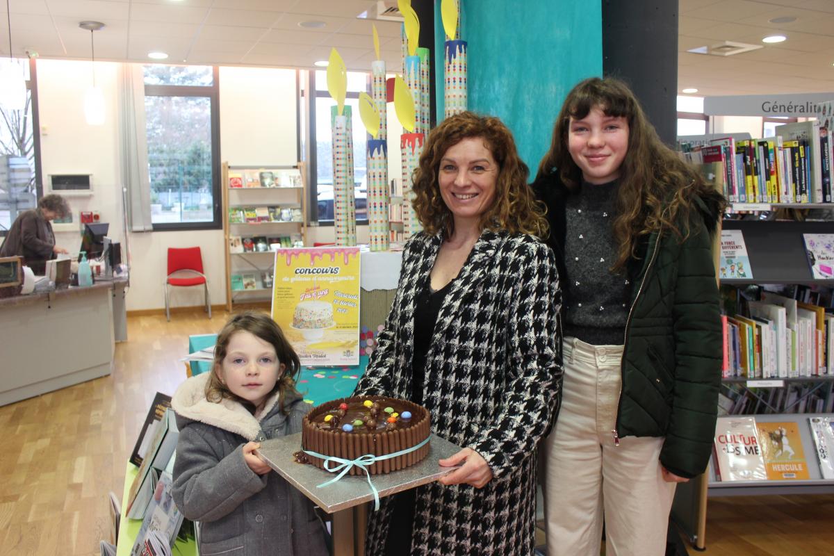 1er prix : le gâteau Famille à trois étages : passion-framboise, vanille-ananas et trois chocolats, par la famille Fardeau Dachary, récompensé par le livre "Pâtisserie pour les enfants" de Philippe Urraca et par un racloir à pâtes offert par Mr Riboulet (Mamie Jotes).