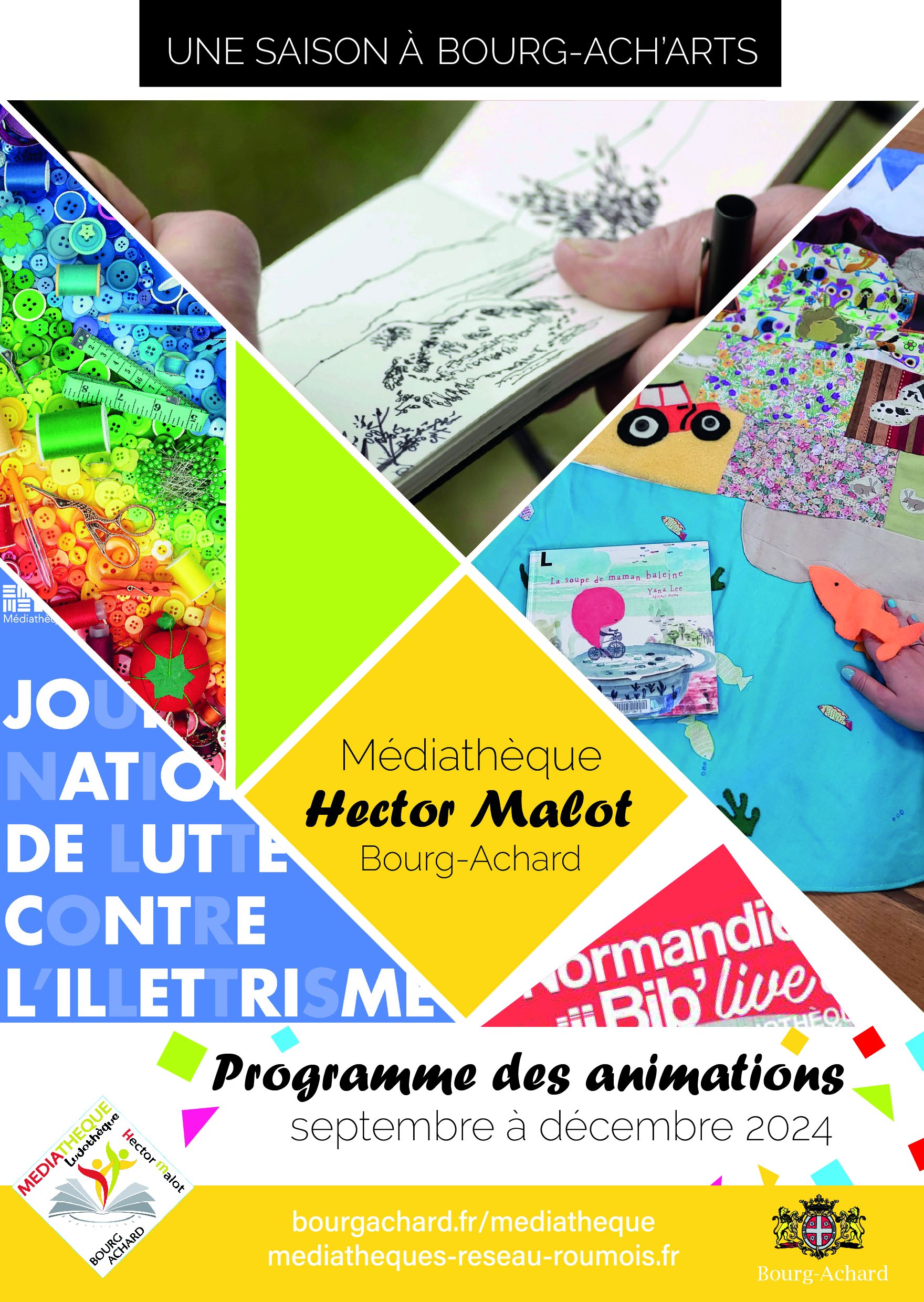 Pour découvrir le programme complet : vous pouvez consulter la rubrique Agenda du site internet de Bourg-Achard, la rubrique Agenda du portail en ligne des médiathèques du réseau du Roumois ou encore cliquez directement sur la couverture suivante :