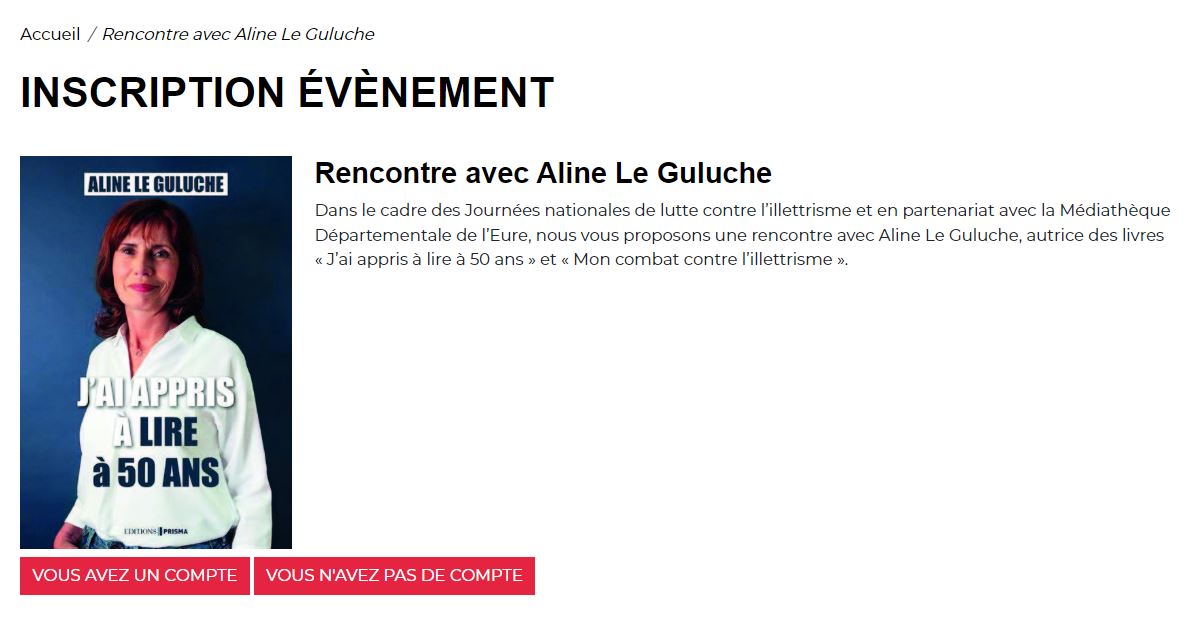Une nouvelle page s’ouvre vous demandant si vous possédez un compte ou non. Il n’est pas nécessaire de posséder un compte ou être inscrit à la médiathèque pour se pré-inscrire à une animation. Cependant, posséder un compte facilitera vos démarches.