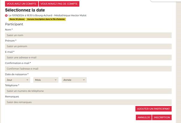 Pour information, vous pouvez inscrire plusieurs personnes sur le même formulaire en cliquant sur le bouton « Ajouter un participant ».