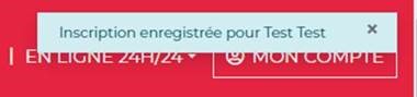 Après avoir validé votre demande en cliquant sur le bouton « Inscription », une fenêtre de confirmation apparaît en haut à droite de votre écran et un mail de confirmation de votre pré-inscription vous est envoyé automatiquement.