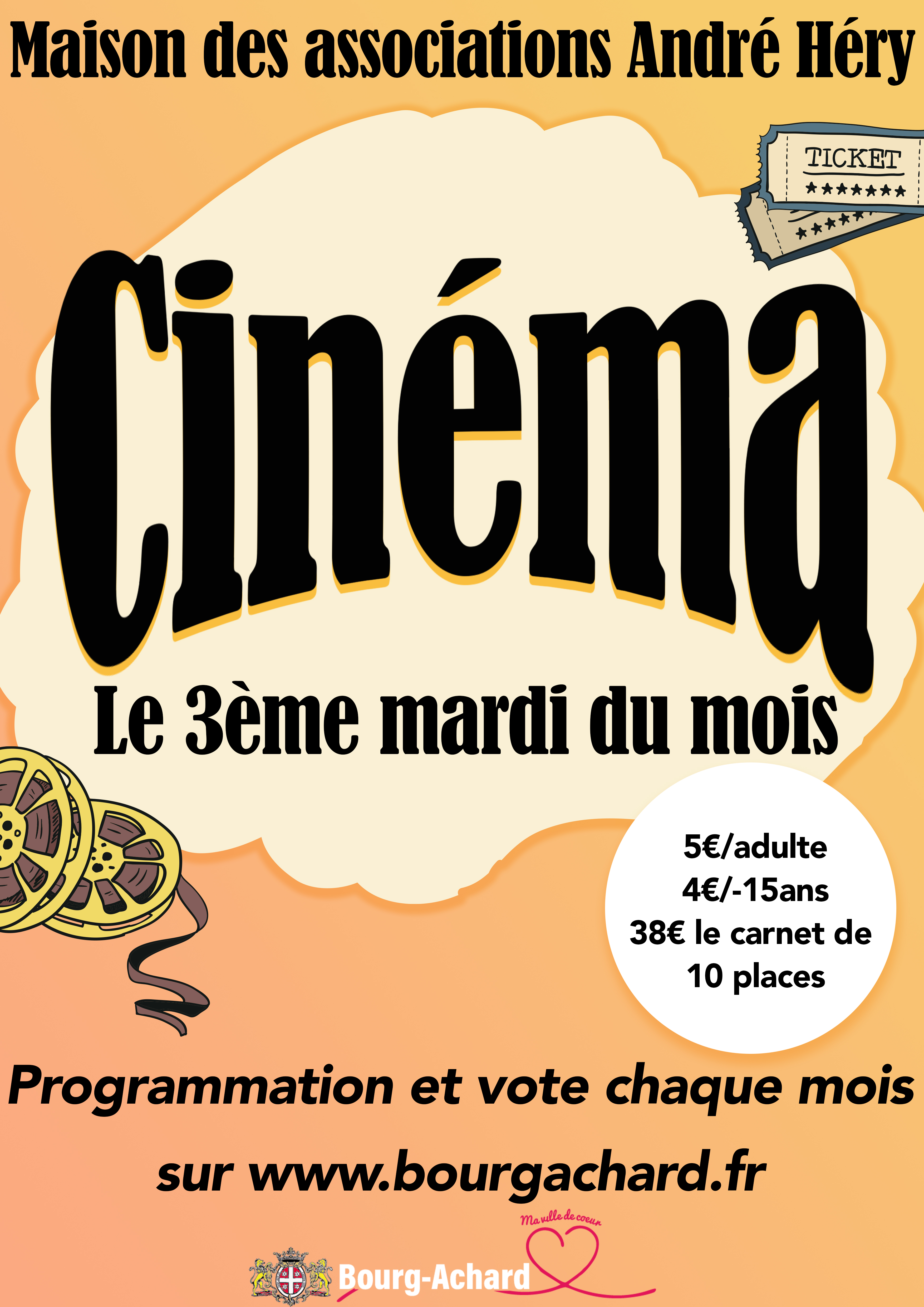 Tous les troisième mardi de chaque mois, nous accueillons à la maison des associations André Héry, deux séances de cinéma.
